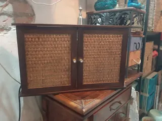 Armario de madera con mimbre