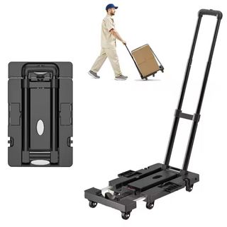 Carretilla plegable extensible ideal para transportar cajas, paquetes y cargas pesadas con total comodidad. Cuenta con plataforma ampliable ajustable a distintos tamaños y sistema de 6 ruedas (direccionales y universales 360°) que facilitan el giro y el desplazamiento incluso en espacios reducidos. El mango telescópico regulable en altura mejora la ergonomía y reduce el esfuerzo. Diseño ultracompacto al plegarse, perfecta para guardar en maletero, armarios o trastero. Base resistente y estable, pensada para uso doméstico o profesional: mudanzas, almacén, oficina, comercio o repartos. Práctica, robusta y fácil de manejar.