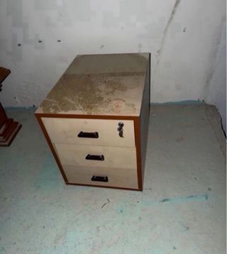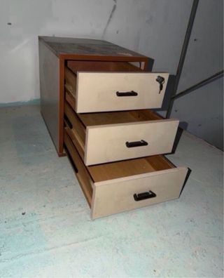 Cajonera de madera con un diseño clásico y funcional. Y cerradura en el cajon de arriba, la base tiene un desconchon que se pone una tapa y queda bie por lo demas en perfecto estado Mide ; ancho 42 cm Fonfo 57 cm Alto 49 cm - Tres cajones amplios para almacenamiento. - Acabado en tonos beige y marrón. - Cajones con tiradores negros. - Cerradura con llave en el cajón superior.