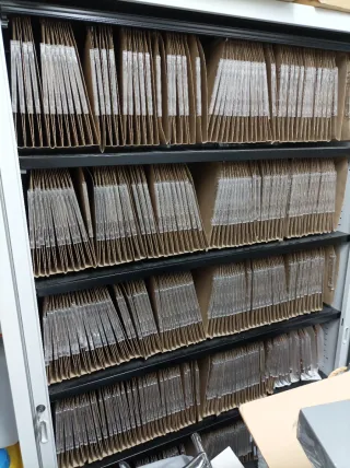 Conjunto aproximado de 1100 carpetas archivadoras colgantes Din A4 Todas: 350€ Por lotes, consultar precio Oficina, escritorio, silla, mesa, archivador, flexo, balda, armario