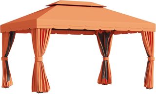 Gazebo De Jardín 4X3 M Con Mosquitera Y Toldos, Gazebo De Exterior Con Doble Techo Y Cubierta De Poliéster Anti UV Y Estructura De Aleación De Aluminio, Naranja