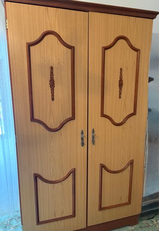 Armario de estilo vintage con dos puertas y cajones inferiores. Su diseño clásico aporta un toque acogedor a cualquier habitación. - Fabricado en madera de pino. - Dos puertas principales. - un cajon en la parte inferior. También tengo mesita de noche y escritorio a juego el kit completo esta en 130e El armario solo son 80e Y la mesita e escritorio 50