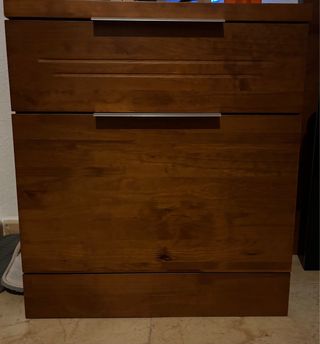 Mueble de dormitorio de madera oscura con tiradores metálicos. - Diseño de líneas rectas. - Acabado en madera. -Es madera madera de calidad, se vende cabecero de 150, dos mesitas de noche esta todo en perfecto estado. motivo de la venta por cambio de estilo solo. Repito como nuevo. Tambien tengo el espejo alargado a juego Tambien tengo el armario que eso no entra en este precio y ya seria hablarlo. Gracias
