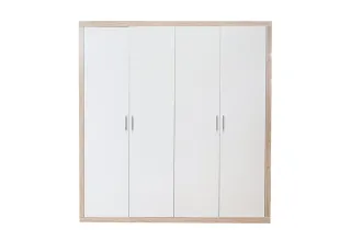 Armario de cuatro puertas con un diseño moderno y elegante. Sus puertas de cristal aportan luminosidad y amplitud a cualquier habitación. - Acabado en blanco. - Puertas de cristal.