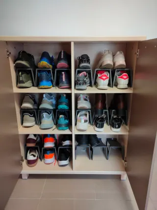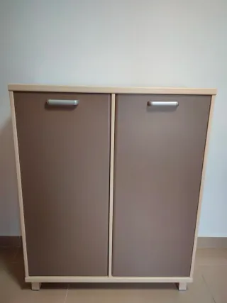 Armario de madera bajo en perfectas condiciones. Su diseño es moderno y multifuncional, para cualquier uso y habitación. Sus colores pegan con todo. - 2 puertas con tiradores. - Organizado en 3 alturas mediante baldas. - Apoyo en 4 patas