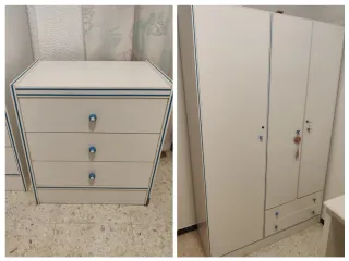 ¡Oportunidad! Conjunto de dormitorio juvenil en excelente estado Se vende juego completo de muebles para habitación compuesto por: — Cama de 90 cm, cómoda y práctica, perfecta para jóvenes o habitación de invitados. Mesita auxiliar / mesita de noche con gran superficie: 60 cm de ancho x 103 cm de largo Armario amplio y funcional: 1 m de ancho x 2,40 m de alto Ideal para guardar toda la ropa y mantener el espacio ordenado. Muebles muy cuidados, listos para usar. Diseño moderno que combina fácilmente con cualquier decoración. ¡Perfecto para renovar una habitación sin gastar mucho! Precio negociable Entrega en mano (consultar zona)