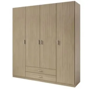 Armario de madera con diseño moderno, ideal para habitaciones juveniles. Sus puertas presentan un acabado liso y tiradores integrados. - Acabado en madera clara. - Cuatro puertas. - Tiradores ovalados.