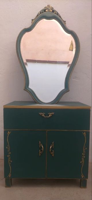Mueble bajo lavabo con un diseño encantador en color verde provenzal. - Fabricado en madera. - Tres cajones superiores. - Tres puertas inferiores. Están en las cajas de embalaje . listos para montar , están a estrenar .