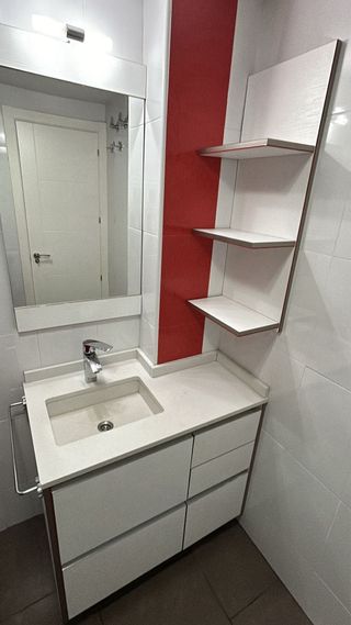 ¡OPORTUNIDAD! Vendo conjunto de baño COMPLETO y funcional. TODO incluido: mueble suspendido moderno, lavabo integrado, espejo grande con luz LED, grifo monomando Grohe premium, armario alto con baldas de cristal. Poco uso, instalación fácil. Componentes del conjunto: ✓ Mueble lavabo suspendido: 60 cm alto, 100cm ancho, 45cm fondo • 2 cajones amplios con guías metálicas suaves • Frente en tonos grises/claros modernos • Lavabo integrado en blanco • Sifón y desagüe en perfecto estado ✓ Grifo monomando Grohe: • Marca premium alemana • Monomando para agua fría/caliente • Acabado cromado, sin manchas • Funcionamiento impecable ✓ Espejo grande con luz LED: • Espejo ancho (100cm aprox) • Luz LED integrada, muy brillante • Marco aluminio moderno • Muy poco uso ✓ Armario de baño alto: 120 cm alto, 60 cm ancho, 35 cm fondo • 2 puertas • 3 Baldas de cristal • Herrajes cromados • Perfecto para medicinas y cosmética • Interior impecable Estado general: Excelente. Muy poco uso, muy cuidado. Limpio y listo para usar. Ventajas: • Conjunto completo, no necesitas nada más • Grifo Grohe, durabilidad garantizada • Luz LED, ahorro energético • Fácil instalación • Diseño moderno que combina todo • Descuento importante vs. compra por separado