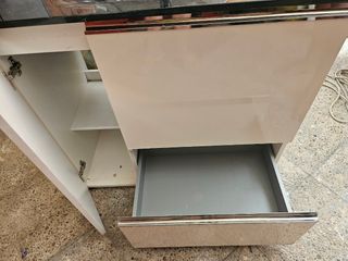 Vendo mueble recién comprado y montado porque no me vale para el baño. Se compone de un armario con cajones y un mueble auxiliar.