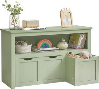 Estantería para Niños, Porta Juguetes para Niños, Multiusos, 3 Contenedores con Ruedas, Porta Juguetes, para Sala de Estar, Habitación Infantil, 30 X 102 X 60 Cm, Verde Laurel LHS380CE01