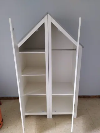 Armario tipo puente con dos secciones de colores. Está en perfecta condiciones. Hay una puerta que se desenganchó pero no consigo volver a engancharla ya que no soy para nada manitas. Ideal para cuarto de niños.