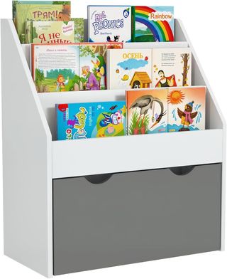 Librería para Niños de 3-8 Años con 3 Estantes y Cajón Inferior, Estante para Juguetes de Madera MDF, 62.5X30X70 Cm, Blanco y Gris