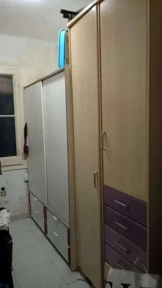 Armario de dos puertas con cajones inferiores + armario de cuatro puertas. Se venden juntos o por separado. - Diseño moderno. - Tiradores metálicos. - Gran Capacidad. Precio del pequeño (un cuerpo): 50€ Precio del grande (dos cuerpos): 80€ Si te llevas los dos: 120€ IMPORTANTE: Hay que llevárselos antes del domingo 22/03/2026