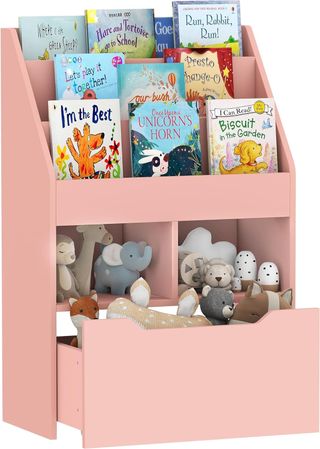 Estantería de madera blanca con 4 estantes abiertos, un cajón y un armario, dimensiones 30L x 24P x 158A cm. Estante superior ajustable en 3 niveles para objetos de varios tamaños. Fabricada en aglomerado, resistente al agua y a los arañazos, con kit anti-vuelco para mayor seguridad. Capacidad de peso máxima de 25 kg (5 kg por estante, 3 kg por cajón). Fácil de montar con instrucciones claras. Diseño que ahorra espacio ideal para apartamentos pequeños, perfecta para sala de estar, dormitorio u oficina. Incluye 1 estante y manual de montaje.