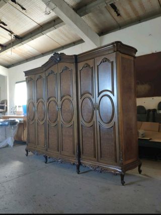 Se vende mobiliario clásico de alta decoración en madera de nogal con incrustaciones en madera de Palo Santo (Canella). El lote está compuesto por: Mueble Aparador con espejo: Vitrina: Armario habitación: Sofá 3 plazas y 2 sillones: 6 sillas (2 de ellas con apoyabrazos) : 1 mesa comedor: Cómoda + Espejo: Cama y dos mesillas: Mesa pequeña centro: *Precio negociable