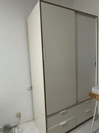 Vendo armario espacioso con puertas correderas, ideal para dormitorio. Cuenta con barra para colgar ropa y cajones, ofreciendo mucho espacio de almacenaje y buena organización. Diseño práctico y funcional. En buen estado, con señales normales de uso. 📍 Recogida en mano. El comprador deberá encargarse del desmontaje y transporte. Si necesitas más información, escríbeme sin problema.