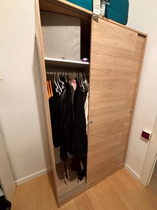 Armario de puertas correderas modelo KLEPPSTAD de Ikea. Tiene menos de un año de uso, en perfectas condiciones. Se vende montado. Puedo facilitar contacto para transportarlo.