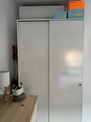 Impecable, 4 meses de uso. Armario modelo Hauga con puertas correderas. Acabado en madera color blanco. 118 x 199 cm Se entrega desmontado