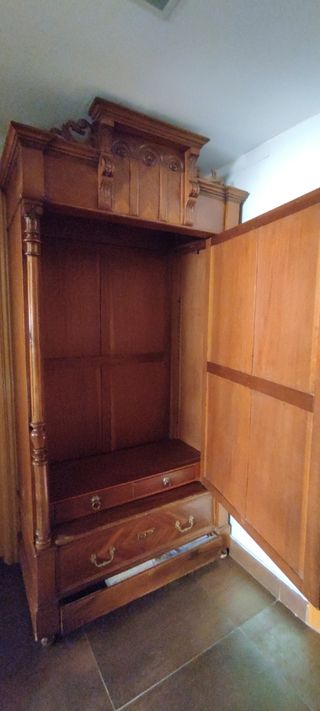 Armario antiguo estilo alfonsino de madera. Mide 220 cms de altura, 107 cms de ancho y 54 cms de fondo