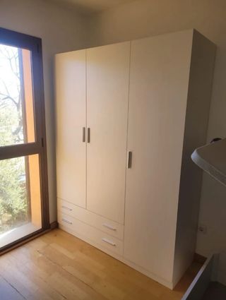 Armario ropero de tres puertas y dos cajones. Es de color blanco y está en buen estado. - Tres puertas amplias. - Dos cajones espaciosos. - Color blanco.
