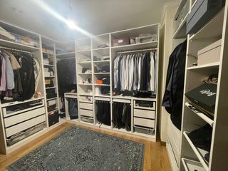 Armario vestidor de diseño moderno y funcional. Sus puertas correderas permiten un acceso cómodo y optimizan el espacio. - Pintado en blanco, color inicial nogal. - Fabricado en madera de alta calidad. - no IKEA comprado en tienda muebles de ma zona 2000 eur en 2017 - se vende tal cual, no está desmontado, se encarga el comprador