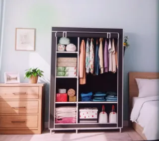 Armario vestidor con cubierta de tela, ideal para organizar tu ropa y accesorios. Su diseño moderno se adapta a cualquier habitación. - Estructura resistente. - Fácil de montar y desmontar. - Amplio espacio de almacenamiento.
