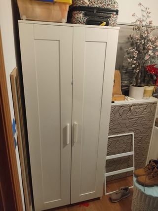 Armario Ikea de madera ideal para recibidor o vestidor. Su diseño moderno y funcional se adapta a cualquier espacio. - Puertas abatibles. - Estantes interiores ajustables.