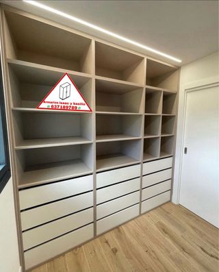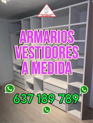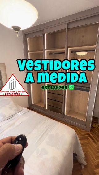 Fabricación y montaje -armarios empotrados -vestidores -frentes de armario precios de fábrica a particulares máxima calidad de materiales y acabados Exclusivos que tú elijas! Diseño interior personalizado puertas diseño lisas japonesas lacados Espejo Vestidores del tamaño que tú elijas Pide tu presupuesto aproximado(SOLO NECESITAMOS LAS MEDIDAS DE LARGO ANCHO Y FONDO)dependiendo de el diseño que quieras te damos un precio aproximado EN VARIOS COLORES Enviamos fotos y videos de nuestros trabajos mas de 15 años de experiencia Pide tu presupuesto sin moverte de casa 🏠nosotros acudimos! ☎️ 637189789☎️ atiendo llamadas y WhatsApp.