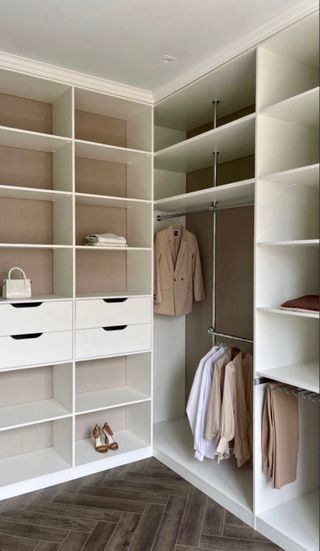 Este vestidor modular ofrece una solución de almacenamiento elegante y práctica. - Estructura principal de madera. - Diseño moderno y funcional.