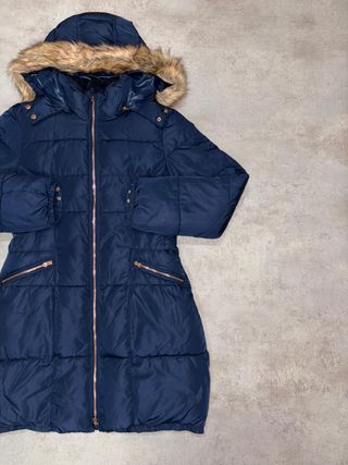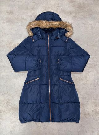 Abrigo Puffer Largo Azul con Capucha