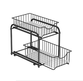 SONGMICS Organizador de cocina, Estantería de 2 Niveles Extraíbles para Armario, Organizador Apilable bajo el Fregadero con Cajones, para Cocina, Baño, Negro Tinta KCS017B01V1