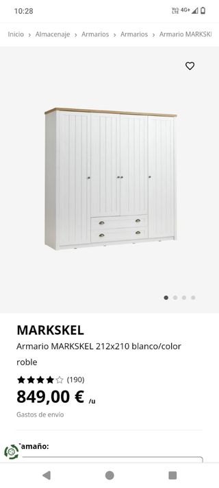 Armario de 3 puertas, 3 cajones grandes, un departamento con 4 lejas y otros dos con leja grande y barra de colgar de 149x204x60cm en 370€. Opcional mueble auxiliar de 118.5x56x81 más ruedas en 100€. No hago envios por su tamaño y peso.