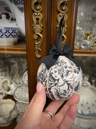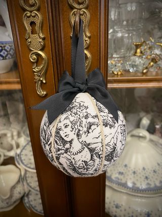 Bola de Navidad de 9 cm de diámetro realizada con tela de algodón toile de Jouy en color negro, para decorar tu árbol, puerta de armario, vitrina o de cualquier mueble. PRECIO NO NEGOCIABLE. Las fotos forman parte de la descripción. #christmasballs #Christmas all #toiledejouy #toiledejouyfabric #toiledejouyvintage #toiledejouyrouge #christmaspresent #christmasgift #christmasdecoration #christmasdecor #christmastreedecoration #christmastreeornament #christmastreedecorations