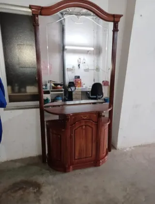 Mueble clásico compuesto por mural de espejos y aparador con pequeño armario y cajón. Mueble de calidad. Ha estado en un piso cerrado durante años. Pequeñas marcas, casi inapreciables, por el uso.
