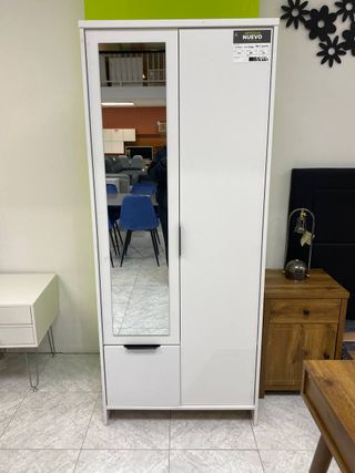 Armario blanco 2 puertas + 1 cajón con espejo