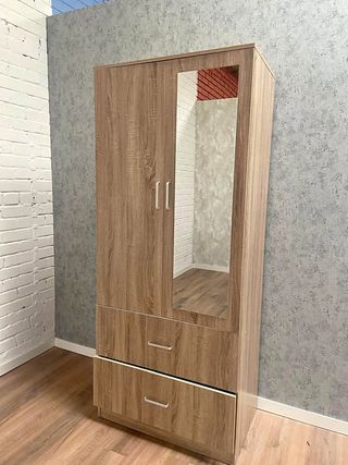para saber mas escribe a 697*204*421- maria Pagas al recibirlo! 📦 Vienen en caja nuevo. ☎ ATENDEMOS WHATSAPP 24H ✅Totalmente nuevo y con 2 años de garantia Armario de dos puertas con un espejo integrado en una de ellas. Su diseño combina la calidez de la madera con la funcionalidad del espejo. - Acabado en madera clara. - Puerta con espejo. - Tirador metálico.