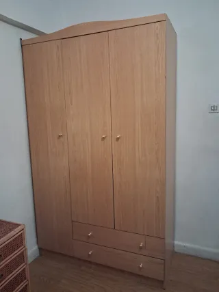 Armario de habitación con un diseño funcional. Medidas 200x 120 x 59 fondo. Esta en BARAKALDO. - Tres puertas de acceso. - Cajones inferiores para almacenamiento adicional. - Acabado en tonos madera.