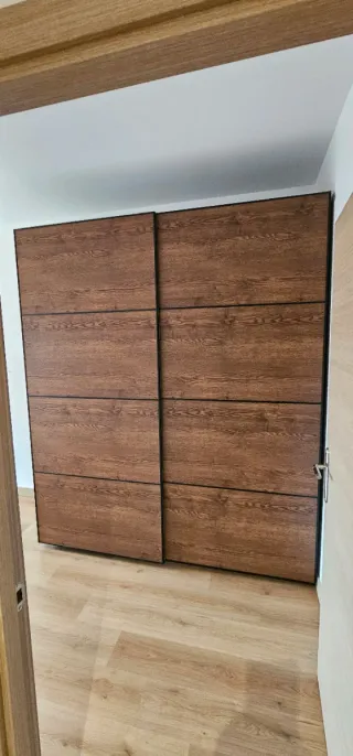 Armario de madera con un diseño elegante y espacioso. - Puertas correderas. - Compartimentos interiores para organización. - Acabado pulido.