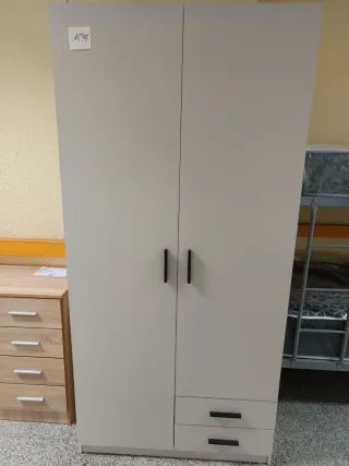 Armario de dos puertas en color beige. - Fabricado en madera. - Diseño moderno con tiradores negros. Medidas Ancho 100cm Alto 207cm Fondo 52cm Tenemos una variedad de muebles, colchones nuevos y de segunda mano, adornos y mucho más. Estamos en la Calle Joaquín Rubio i Ors, 195, Cornellá de Llobregat. ¡Ven a visitarnos! Teléfono: 93 475 32 80