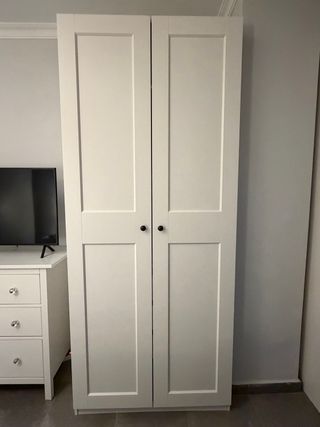 Armario de doble puerta con un diseño clásico y elegante. - Acabado en color blanco. - Fabricado en madera de calidad.