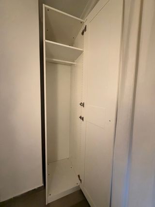 Armario de una puerta con baldas interiores. Su diseño sencillo y funcional lo hace ideal para cualquier espacio. - Puerta con tirador. - Balda interior para organización.