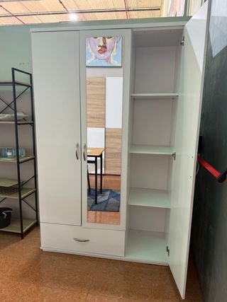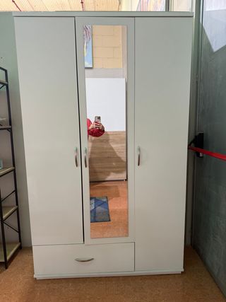 rmario de madera de 3 puertas con espejo central + cajón inferior – Blanco, Nuevo ¡Organiza tu habitación con estilo! Armario nuevo, de madera resistente, con 3 puertas, espejo central y cajón inferior, en color blanco elegante. Ideal para todo tipo de dormitorios y espacios modernos. Estado: Nuevo Material: Madera Color: Blanco Medidas: 195 cm alto × 120 cm ancho × 50 cm fondo Detalles: Espejo central + cajón inferior para mayor comodidad 📱 Contacto: WhatsApp 640704619 🚚 Envíos a domicilio en toda España (gastos de envío aparte) ¡Aprovecha y renueva tu dormitorio con este armario práctico y elegante!