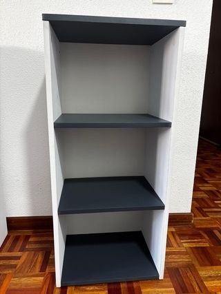 Estantería de diseño moderno con acabados en gris y blanco. Ideal para organizar tus pertenencias. - Estructura de madera. - Tres baldas. - Diseño abierto. -Es desmontable. Envío rápido! 🚚