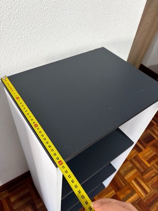 Mueble de almacenamiento con cajones y espacio superior abierto. Se entrega desmontado. No se envia. - Diseño moderno y funcional. - Cuatro cajones en la parte inferior. - Estructura alta y estrecha.
