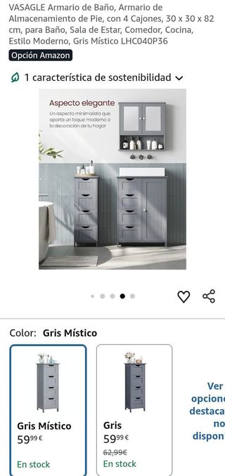 Armario de Baño 4 Cajones Gris Místico 30x30x82cm VASAGLE