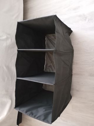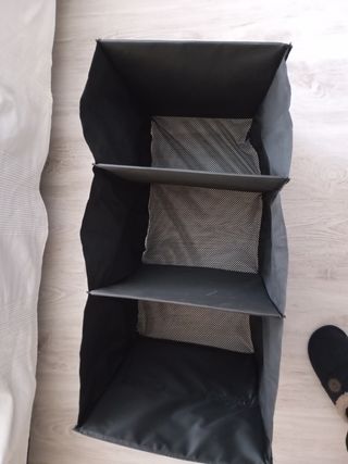 Organizadores de armario 31x55x33, los tres por 10 € color negro, o c/u por 4 € ideal para almacenar ropa, de temporada o juguetes de niños, si no se usa se puede plegar, como nuevo