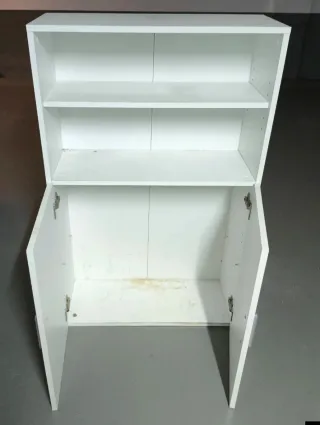Mueble blanco con puertas y estantes