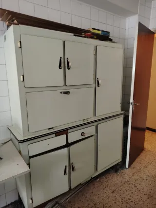 Armario vintage años 50–60 para restaurar – Madera chapada Vendo armario de cocina vintage original, típico de los años 50–60. Fabricado en madera recubierta de chapa, con tiradores y bisagras originales de época. Ideal para restaurar y dar un toque retro a cocina, estudio o espacio decorativo. El mueble está completo y conserva su estructura firme. Presenta signos normales del paso del tiempo, propios de su antigüedad, perfectos para un proyecto de restauración o decoración vintage. Consta de módulo superior e inferior, con gran capacidad de almacenaje. Pieza auténtica, cada vez más difícil de encontrar. Se puede ver sin compromiso