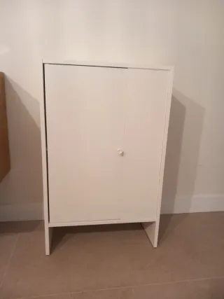Mueble auxiliar de Ikea con dos cajones y un espacio abierto superior. - Diseño compacto y funcional. - Tiradores integrados en los cajones. - De la serie Brimnes de Ikea - Dos pequeños desperfectos (fotos adjuntadas)